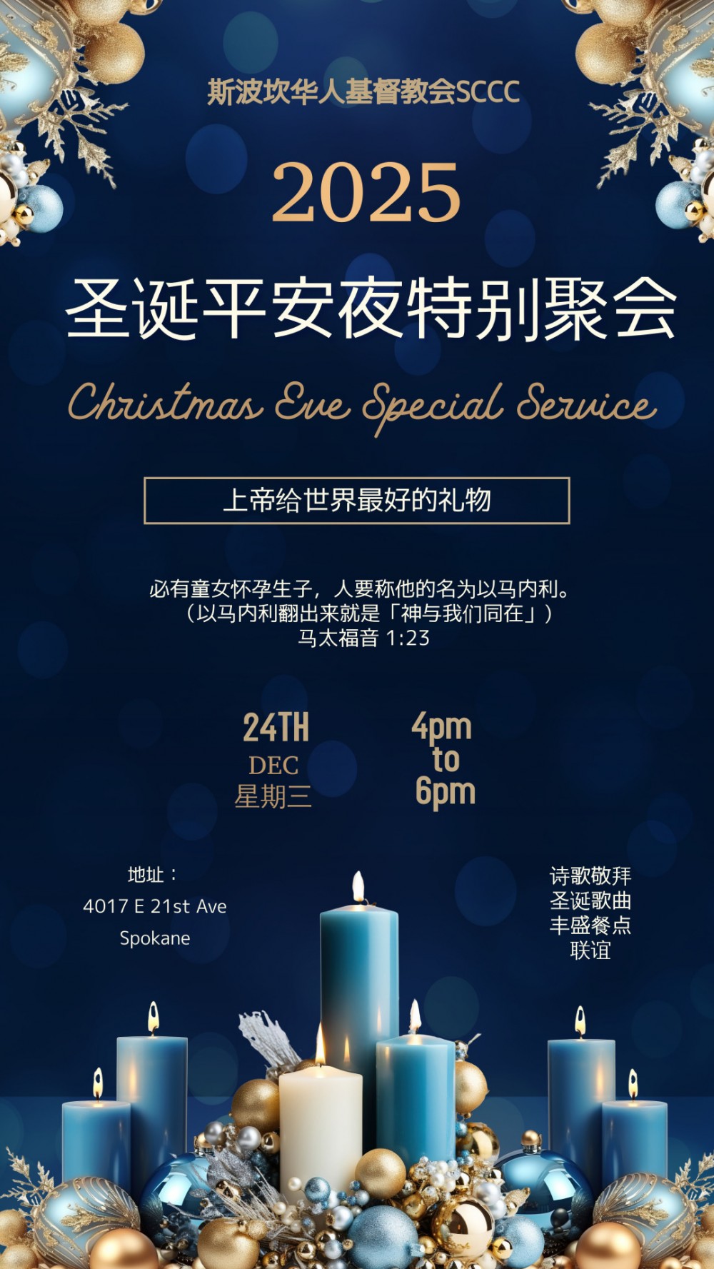 Upcoming 2025 Christmas Eve Special Service 2025 圣诞平安夜 特别聚会 12/24/2025 @ 4pm-6pm